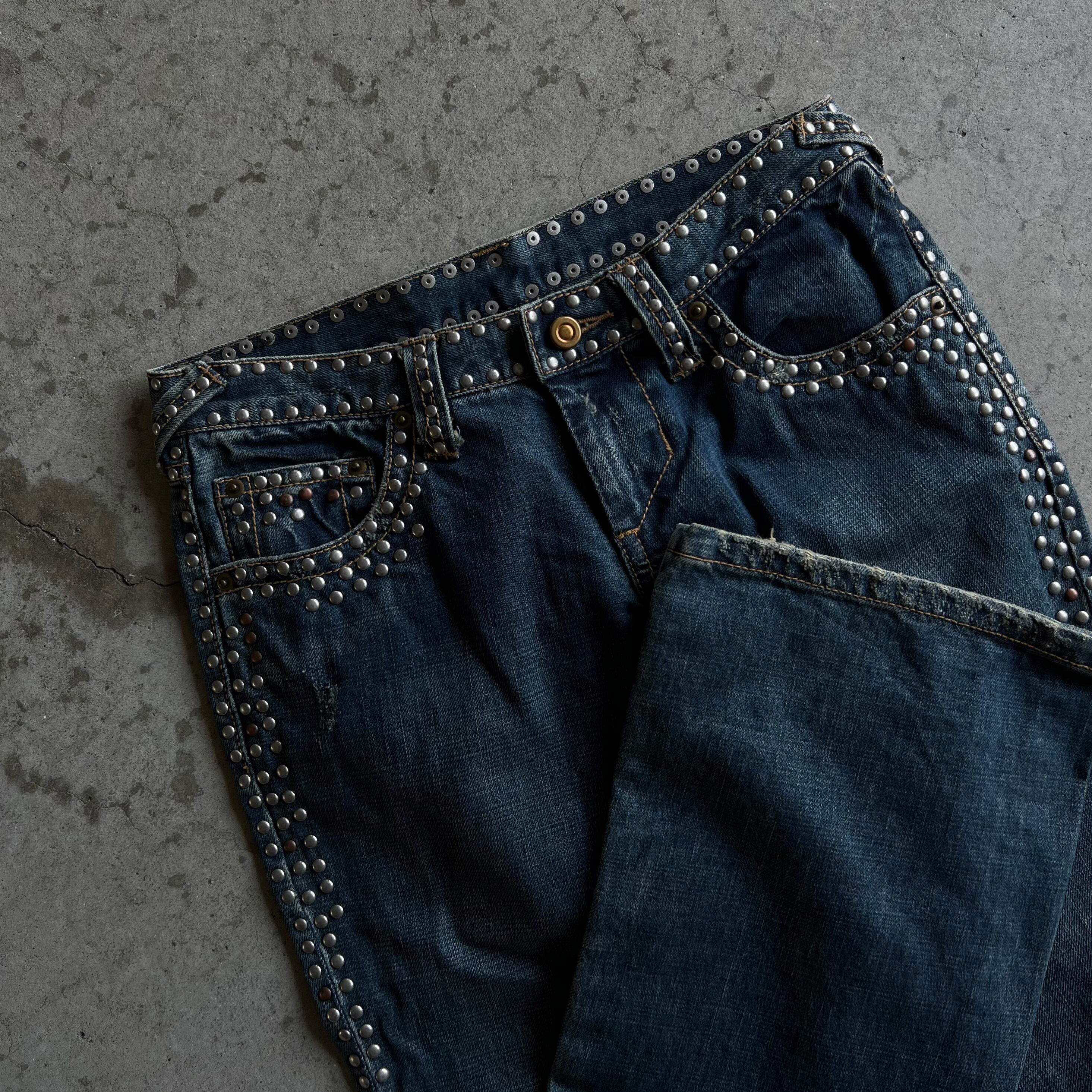 kooks & chelica studs boot cut denim pants y2k